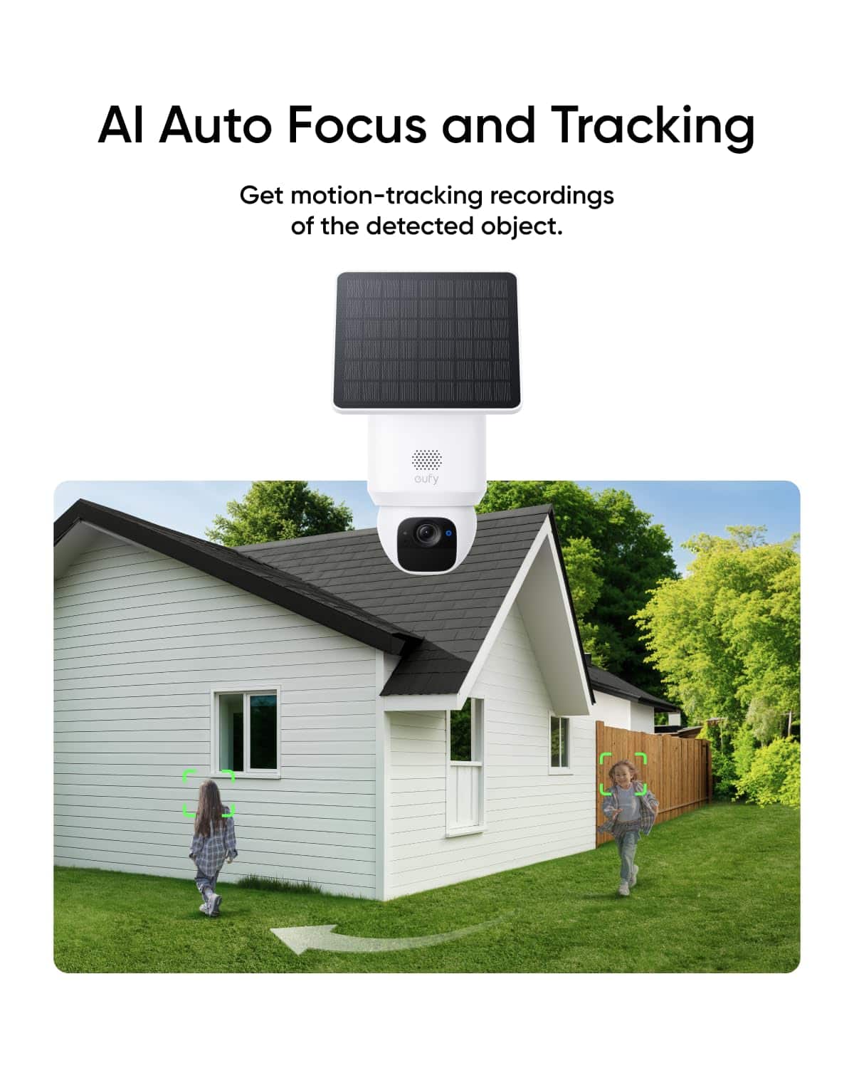The AI automatically detects and follows moving objects, such as people or vehicles, within the camera’s field of view, providing focused recordings.